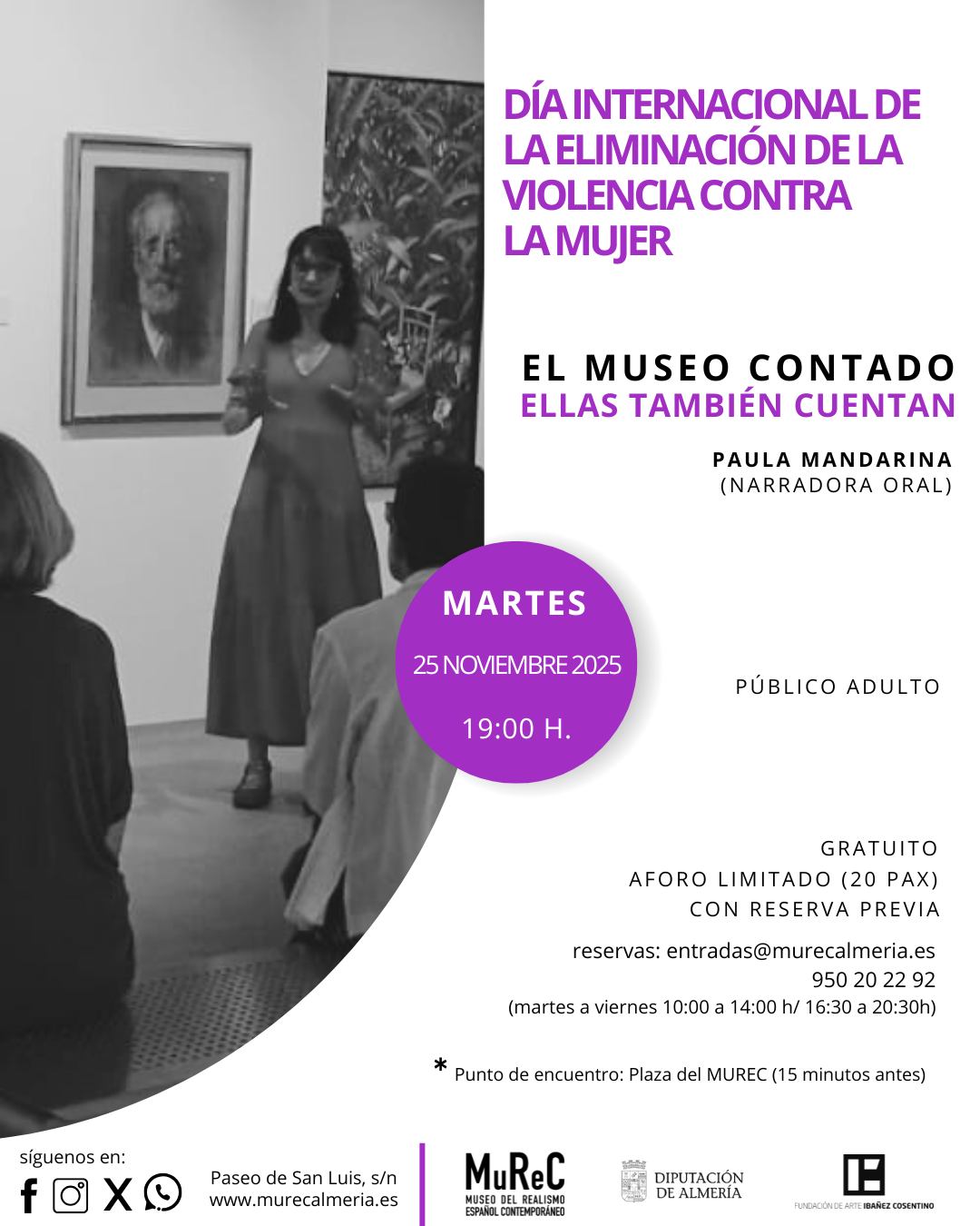 A través de algunas de las obras expuestas en la colección permanente, Paula Mandarina, narrará diferentes cuentos de creación propia con una temática común: la violencia contra la mujer. Su voz se acompañará en esta ocasión de música en directo.